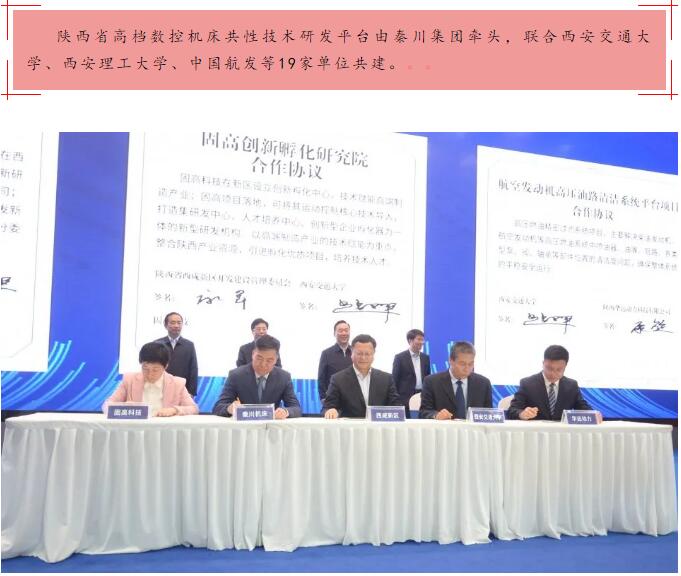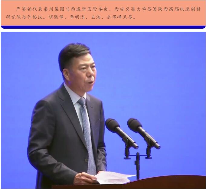 3月30日,秦创原创新驱动平台建设大会在西咸新区召开。省委书记刘国中出席会议并讲话。省长赵一德主持。省委副书记胡衡华介绍秦创原创新驱动平台工作推进情况。省委常委、西安市委书记王浩,西安市市长李明远,西安市政协主席、西咸新区党工委书记岳华峰出席。 会上,秦川集团获授“陕西省高档数控机床共性技术研发平台”,秦川集团党委书记、董事长严鉴铂接受授牌并与多家单位签署合作协议。