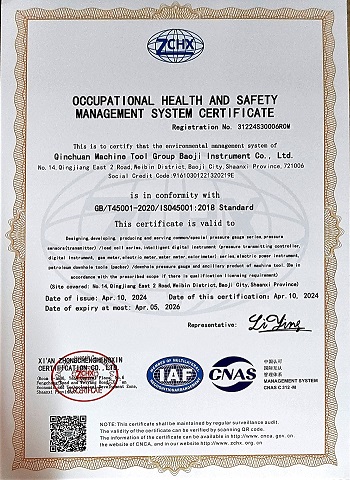 职业健康安全管理体系认证证书